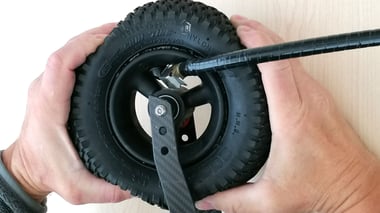 The X-/L-leg adjustment is made by bending both calf straps in the appropriate direction - if the scooter leans too far outwards, then both calf straps must be turned/bent outwards - this causes the scooter to lean inwards.