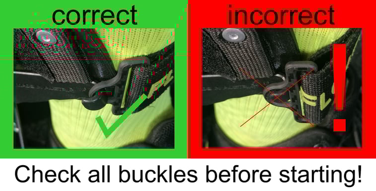 Then unbuckle in reverse order - toe strap, middle strap and only release the calf strap at the end - so you are well stabilized until you get off.