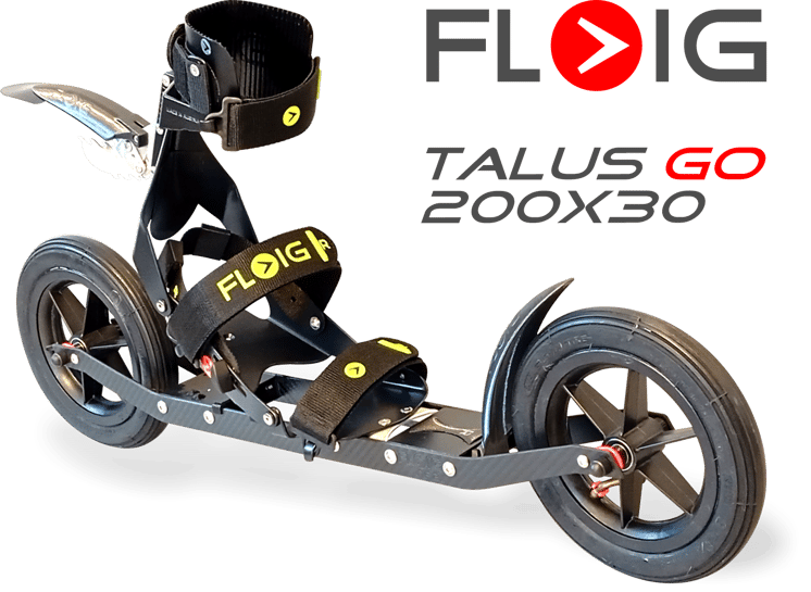 Der FLOIG TALUS GO 200x30 mit 200x30er Räder bietet Leichtigkeit, Geländegängigkeit und Speed. Diese Räder sind darüber hinaus auch extrem langlebig. Absolut top für selektive Langstrecke. Anstatt der 200x30er Räder können auch die 200x50er Räder montiert werden. In diesem Fall wären die Bremsbacken auch zu tauschen. Der Fersenhochgang ist auch fixierbar.