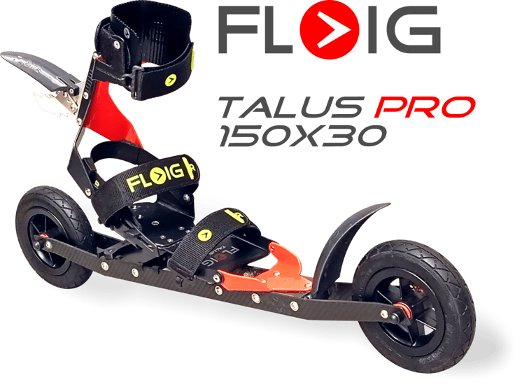 Bei den TALUS PRO-Modellen befindet sich der Drehpunkt für den Fersenhochgang im Zehenbereich und ermöglichen somit ein komromissloses Fortbewegen im Diagonalschritt. Da der Drehpunkt deutlich vorderhalb der Rollermitte sitzt, wurde eine Rückholfeder an der Unterseite verbaut - so ist auch Skating absolut kompromisslos damit zu laufen. Mit den 150x30er Rädern ist ein bereits geländetauglicher CrossSkate mit der Leichtigkeit eines Schirollers. Damit ist auch auf gröberem Asphalt ein komfortables Langlauferlebnis garantiert und auf glattem Asphalt sowieso. Der Fersenhochgang ist auch fixierbar.