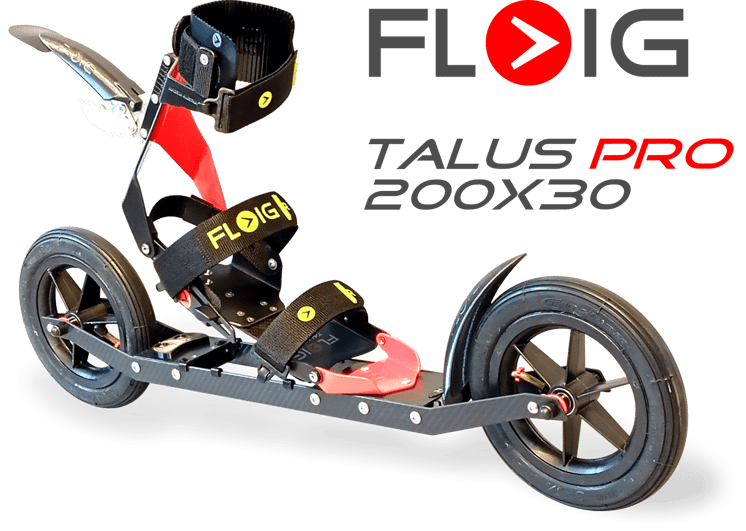 Bei den TALUS PRO-Modellen befindet sich der Drehpunkt für den Fersenhochgang im Zehenbereich und ermöglichen somit ein komromissloses Fortbewegen im Diagonalschritt. Da der Drehpunkt deutlich vorderhalb der Rollermitte sitzt, wurde eine Rückholfeder an der Unterseite verbaut - so ist auch Skating absolut kompromisslos damit zu laufen. Mit den 200x30er Rädern bietet dieser CrossSkate Leichtigkeit, Geländegängigkeit und Speed. Diese Räder sind darüber hinaus auch extrem langlebig. Absolut top für selektive Langstrecke. Anstatt der 200x30er Räder können auch die 200x50er Räder montiert werden. In diesem Fall wären die Bremsbacken auch zu tauschen. Der Fersenhochgang ist auch fixierbar.